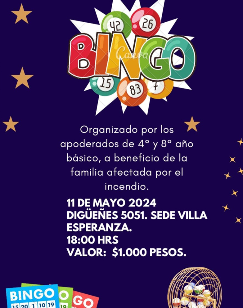 Bingo solidario para nuestra apoderada Balmacediana afectada por incendio domiciliario.